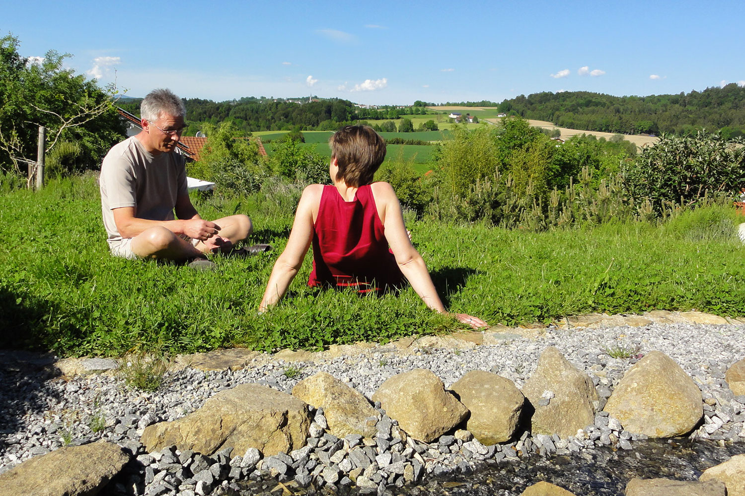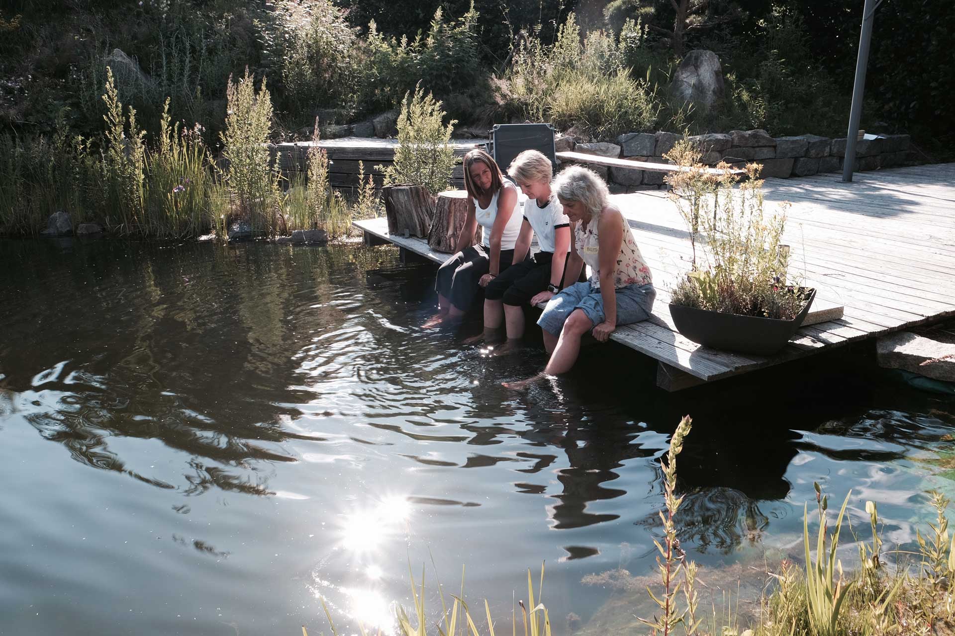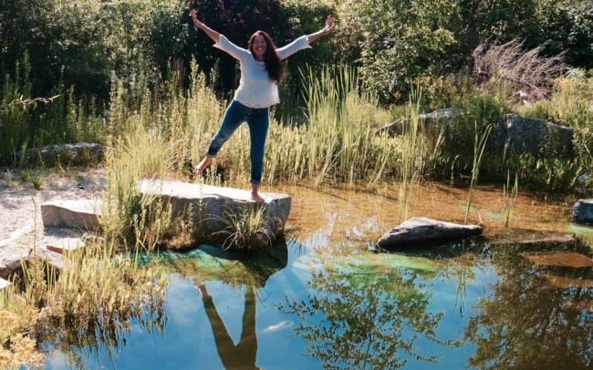 Im schönen Niederbayern – am Schwimmteich und Steinkreis bei Sonnenschein. Mit Leichtigkeit und Freude in deine Selbstliebe – in Bayern.